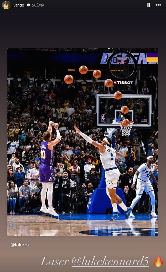 赛后范德比尔特更新社媒,转发了肯纳德的绝杀完美投篮弧线。