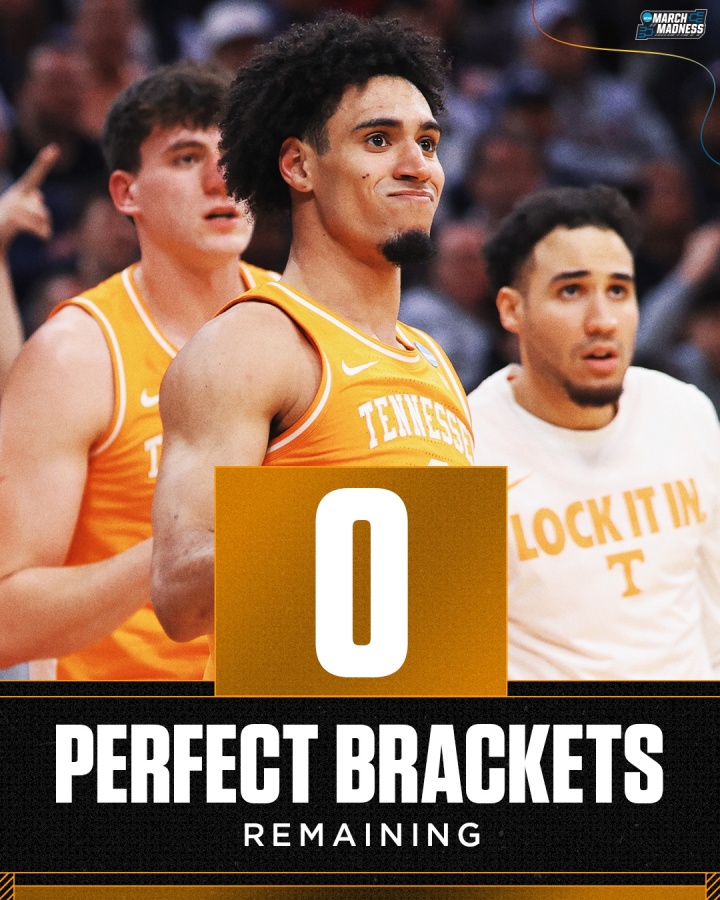 直播吧03月23日讯 2026年NCAA疯三正赛刚刚开打四天,目前还在32进16阶段,3600万+预测表中完全正确的已经清零。