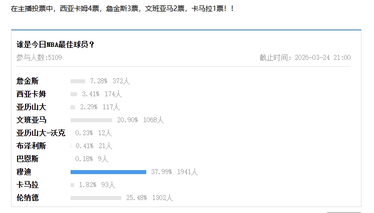 在主播投票中,西亚卡姆4票,詹金斯3票,文班亚马2票,卡马拉1票!!