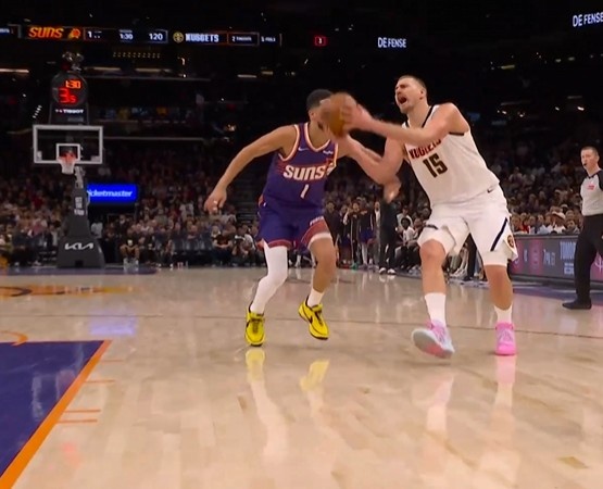 >驾轻就熟!约基奇持球强攻 对抗防守骗到犯规两罚中一