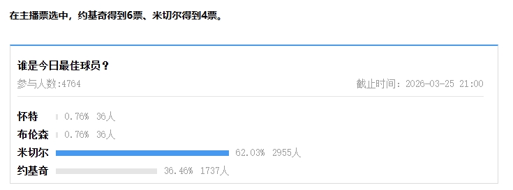 在主播票选中,约基奇得到6票、米切尔得到4票。