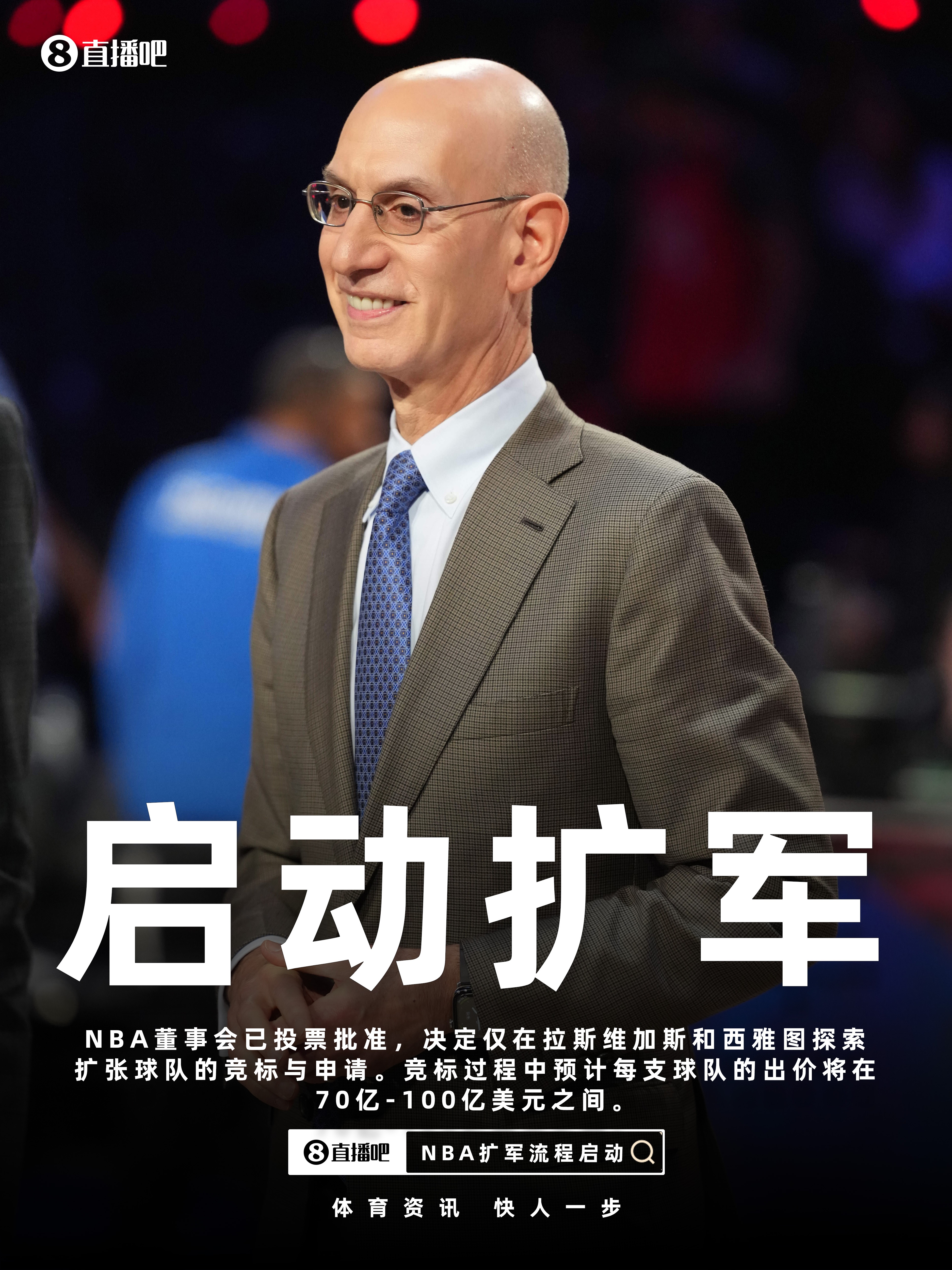 NBA总裁萧华表示:“今天的投票反映了董事会对于探索在拉斯维加斯和西雅图进行扩军的兴趣——这两座市场对NBA篮球有着长久的支持历史。我们期待推进下一步工作,并与相关方展开沟通。”