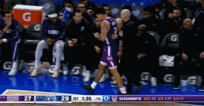 >手指脱臼?国王球员海斯手指受伤主动犯规返回更衣室