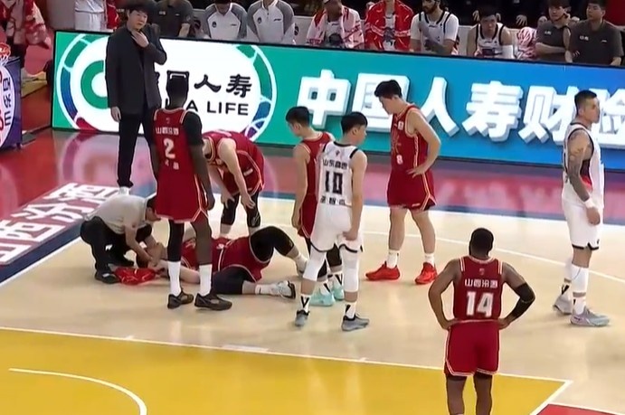 望无碍!陶汉林起球肘到刘传兴锁骨位置 后者十分痛苦&被担架抬出
