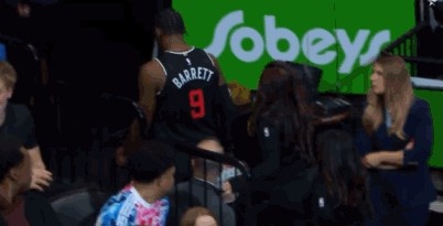 >受伤了!巴雷特与锡安争抢篮板受伤 返回更衣室