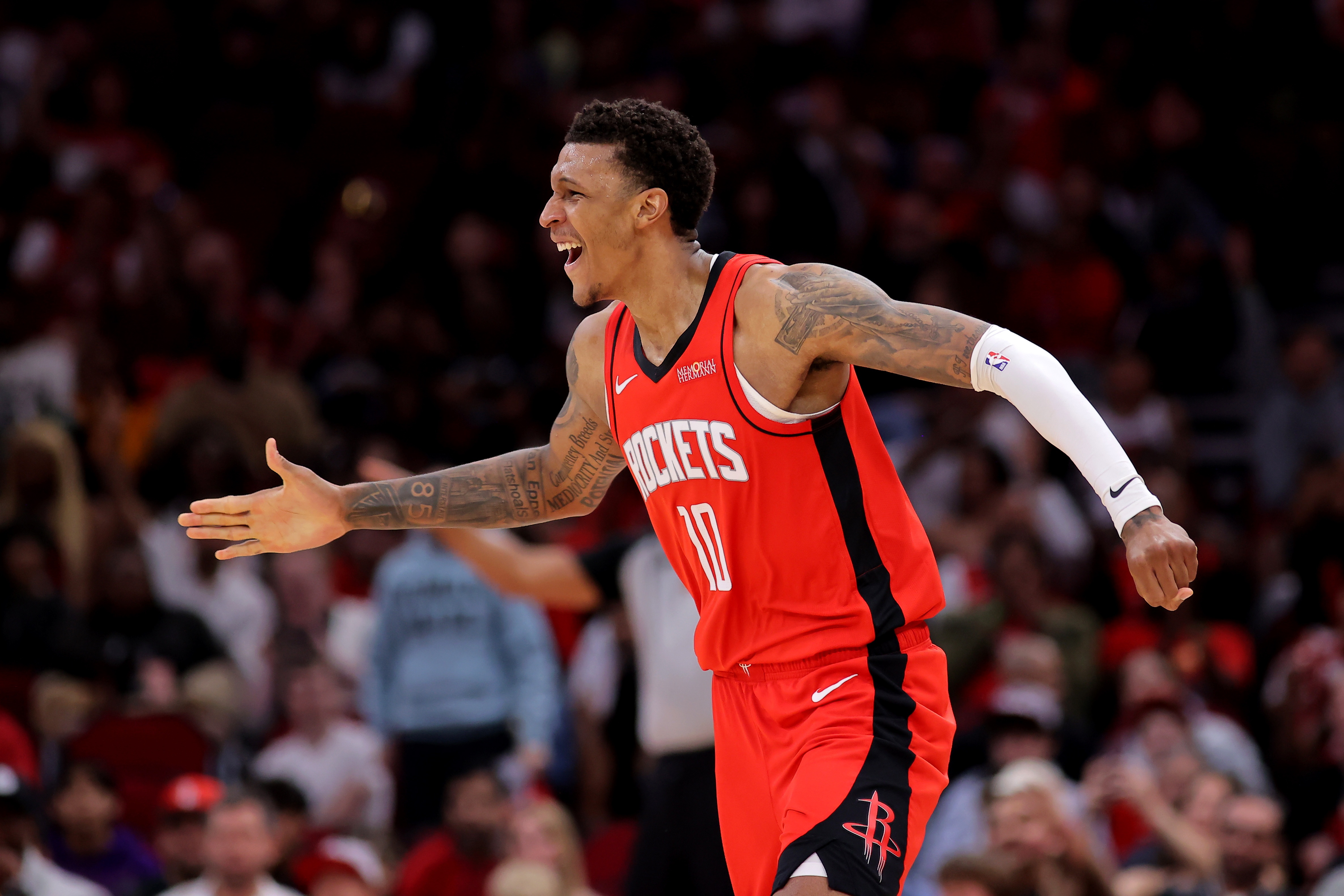 本场比赛,火箭球员小史密斯表现不错,进攻可以的同时篮板也很积极,有5个前场篮板,打了37分钟,投篮16中7,三分球7中2,罚球8中5,拿下21分16篮板4助攻1盖帽的数据,正负值+8。