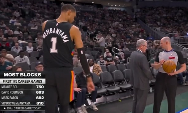 >前4有2个马刺球员!生涯前175场盖帽数文班610个第4 海军上将第2
