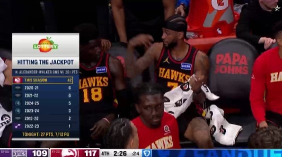 爆发年!亚历山大-沃克赛季42次20+ 几乎是前6个赛季的两倍