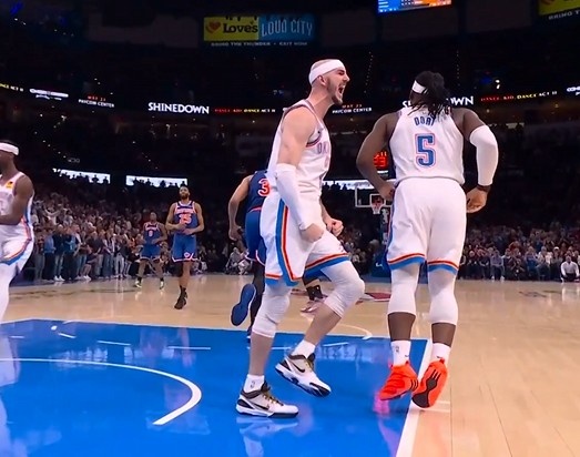>卡位大于身高!卡鲁索篮下硬刚唐斯抢板成功 激情振臂怒吼庆祝