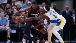 比赛开始,热火一波9-0建立主动权,随后双方对攻,米卡·波特连中4记三分咬住比分,麦康纳里突外投几乎弹无虚发一度反超比分,次节双方继续对轰,希罗保持进攻火力,但西亚卡姆单节17分带队反超比分,哈克斯里突外投还飙中压哨三分,半场步行者反超4分。下半场,热火多点开花反超比分后步行者全民皆兵还能回应,分差始终拉不开,三节双方得分都破百,末节西亚卡姆步行者还是能掌握住微弱领先,热火连续三分打铁,步行者又是10-2扩大至16分领先,最终步行者135-118击退热火。