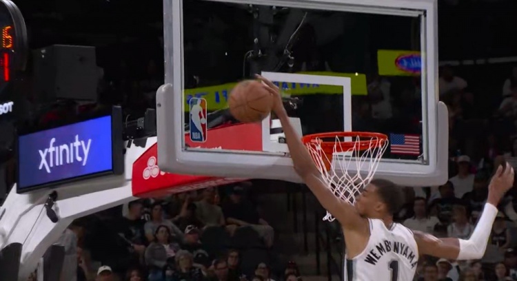 天怎么黑了?布泽利斯滞空躲闪防守 仍遭文班钉地板血帽