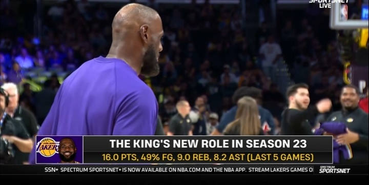 >转播方晒詹姆斯过去5场数据:国王在第23个赛季的新角色
