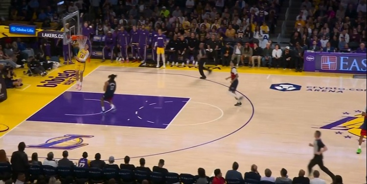 >精准制导!詹姆斯转身送长传 拉拉维亚接球反击单臂飞扣