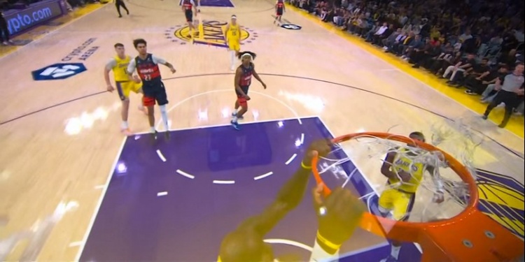 >飞高高!里夫斯信手一撩送抛传 詹姆斯腾空而起双手空接暴扣