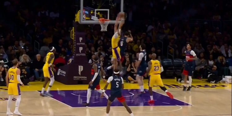 摧枯拉朽!詹姆斯送长传 海斯接球快下一飞冲天双手暴力灌篮