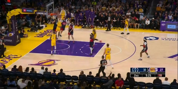 >摧枯拉朽!詹姆斯送长传 海斯接球快下一飞冲天双手暴力灌篮