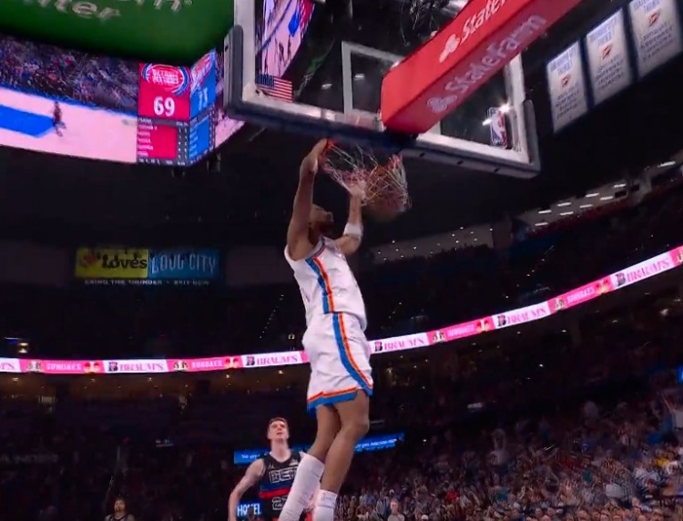 突然发力!阿隆·维金斯抢断反击双手暴扣 本节已独得8分
