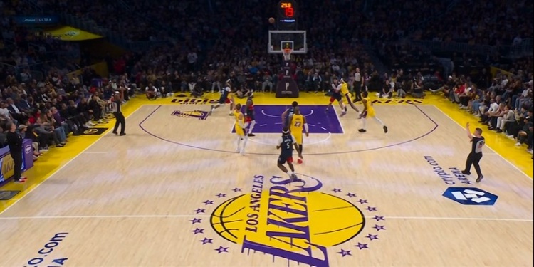 3-2!詹姆斯助攻肯纳德三分 海斯篮下被吹犯规送莱利2罚全中