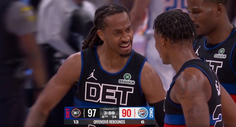 完全起势了!詹金斯三分再中 活塞领先7分打停雷霆