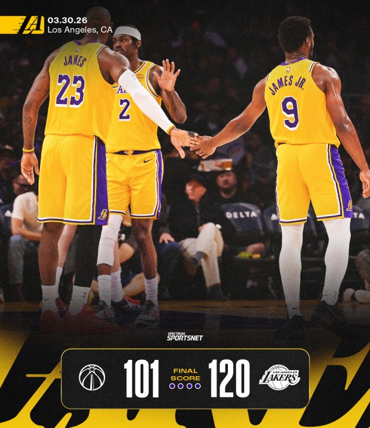 直播吧3月31日讯 今日,湖人120-101主场击败奇才。