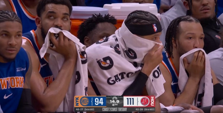 不开心!尼克斯大势已去 布伦森&唐斯等众将在板凳席一脸落寞