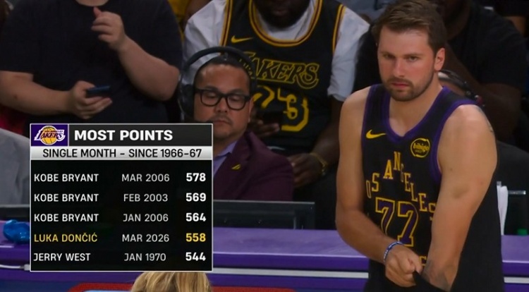 难度不大!东契奇今天得21分就能超科比 成为湖人队史单月得分王
