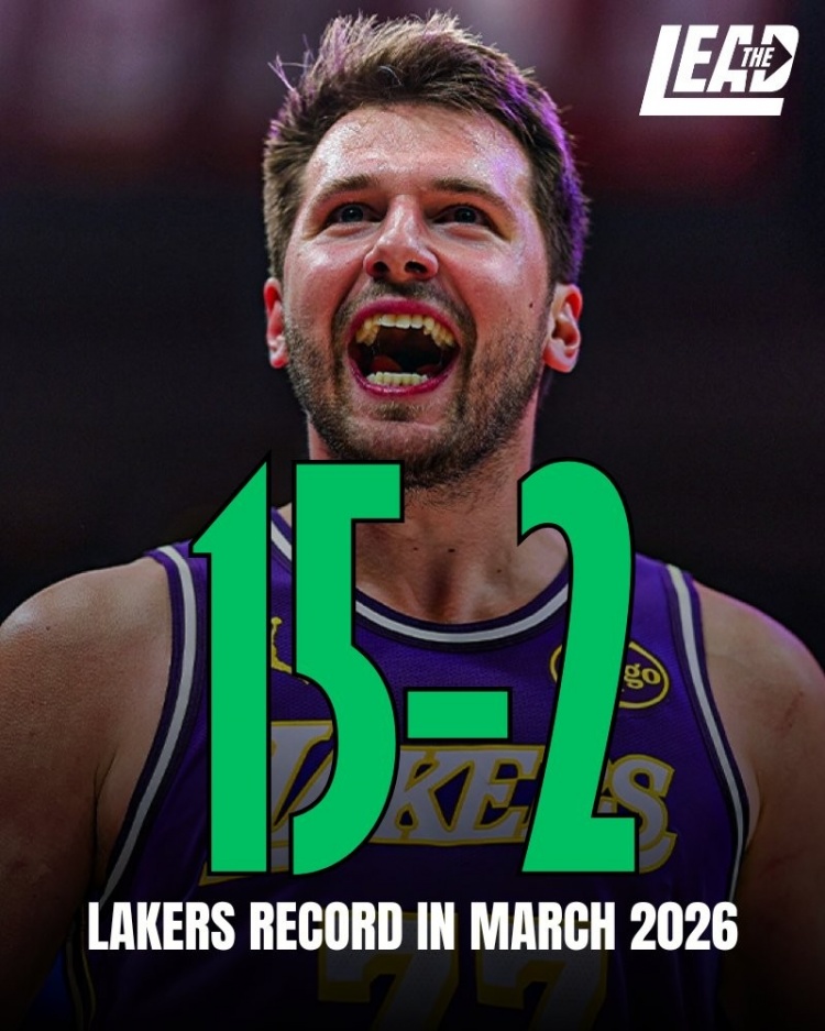 整个三月份(当地时间),湖人一共打了17场比赛,战绩15胜2负。
