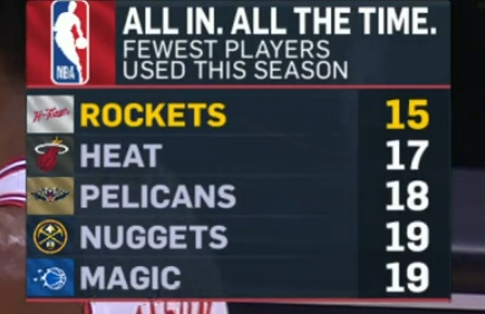联盟最少轮换!火箭本赛季仅15人登场 全联盟最少!
