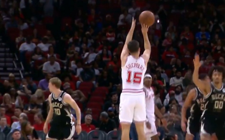 今天手很热!谢泼德接手递手掩护直接拔起命中个人第6记三分球