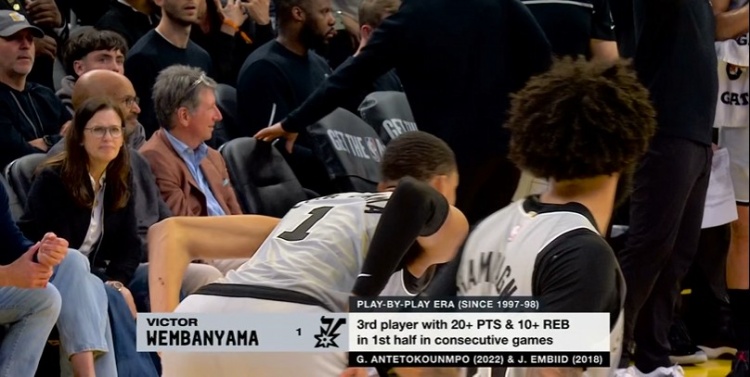 恩比德和字母后第三人!文班亚马连续2场上半场20+10