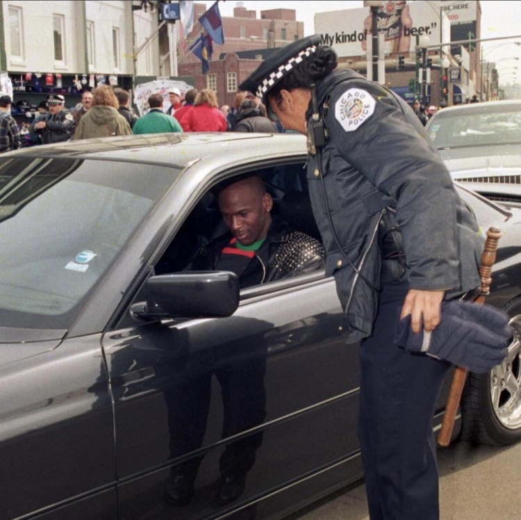 乔丹:“不,我能凭我这张嘴逃过罚单。你们俩才有麻烦了。我认识很多人。我都不知道自己有多久没吃过罚单了。”