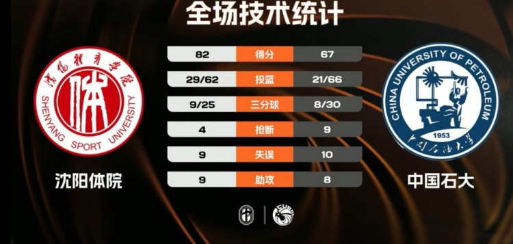 末节争夺,姜相杰三分将优势再度扩大到两位数,此后双方围绕10分分差展开拉锯战,韩俊龙连续内线得手,宋烽岩再中三分,刘相东连投带罚还以颜色,沈阳体院稳扎稳打保持场上主动,中国石大苦苦追赶无果。最终,沈阳体院82-67力克中国石大。