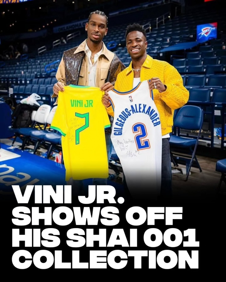 直播吧4月2日讯 皇马球星维尼修斯更新社媒,晒出了亚历山大送给他的各种配色签名鞋Shai 001。