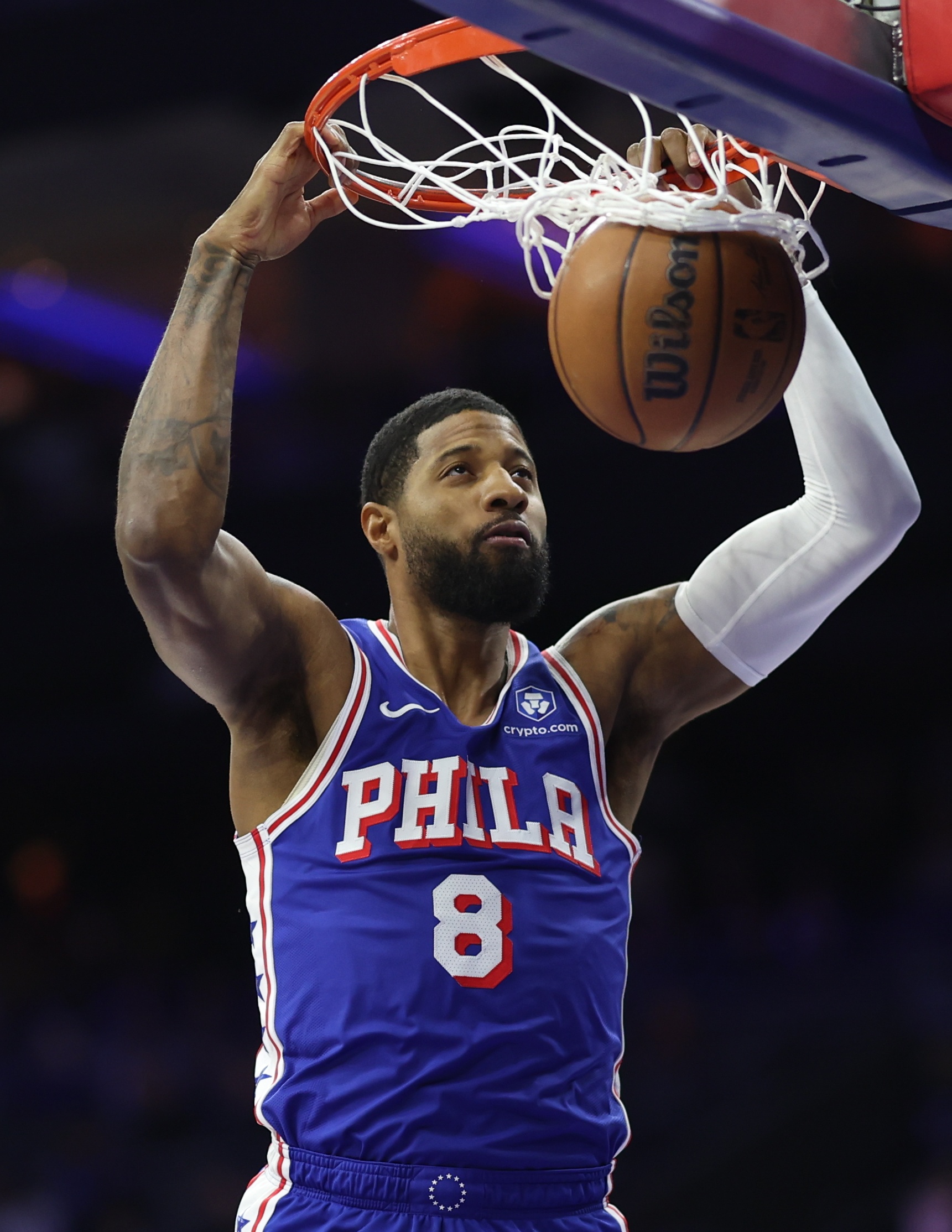 直播吧4月4日讯 NBA常规赛,76人115-103战胜森林狼。乔治出战38分钟,投篮15中6,三分球7中3,罚球10中8,拿到23分6篮板6助攻3抢断1盖帽,不过有6次失误略多。