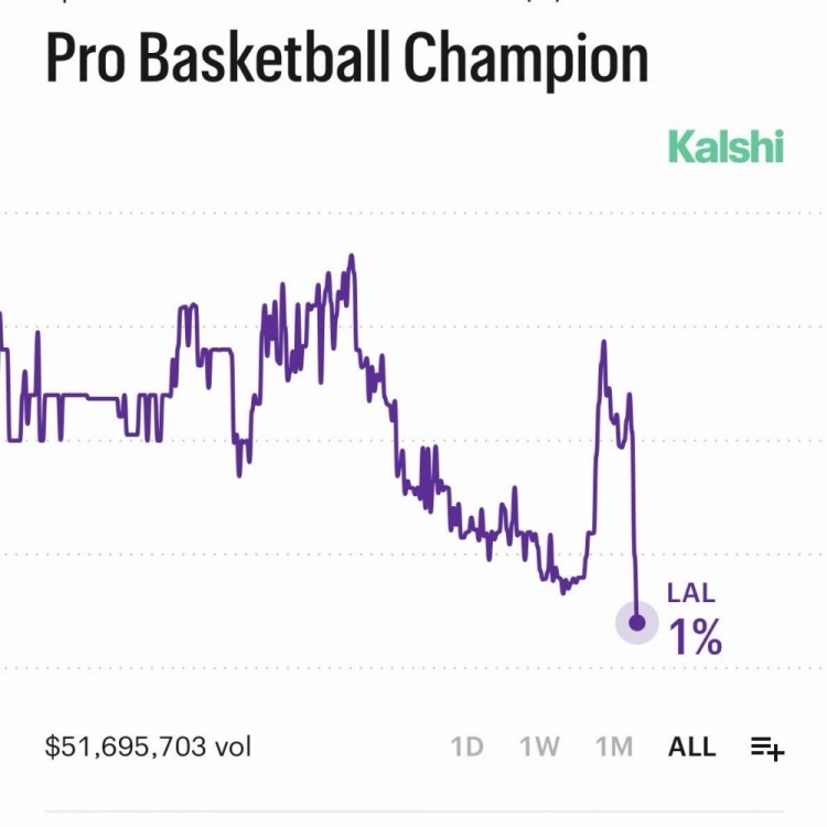 预测平台更新实时数据,湖人夺冠概率已经降到1%。