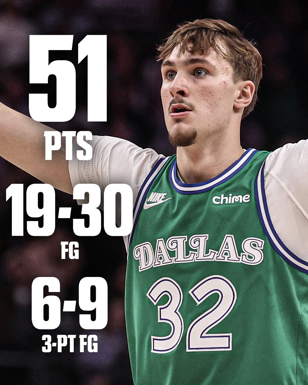 独行侠状元弗拉格打出生涯代表作,他全场出战33分33秒,30投19中(三分9中6)、罚球7中7,狂砍51分6篮板3助攻3抢断1盖帽,只有1次失误,正负值-2。