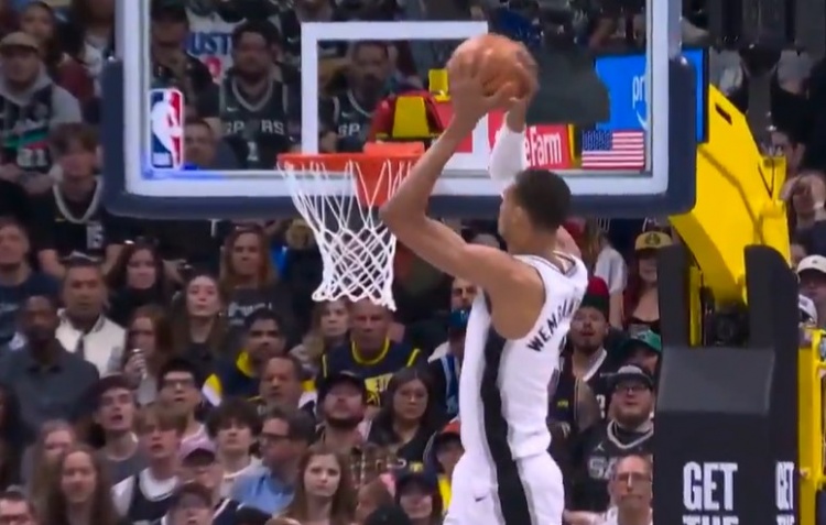 轻松平筐!卡斯尔抛传高空制导 文班随便起飞双手空接炸扣!