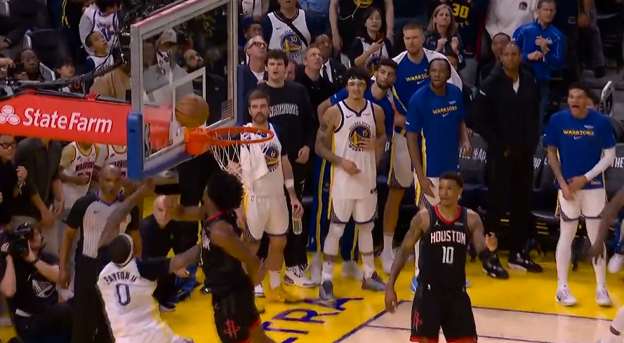 >💥反超!小佩顿上篮打板 阿门追帽干扰球了!