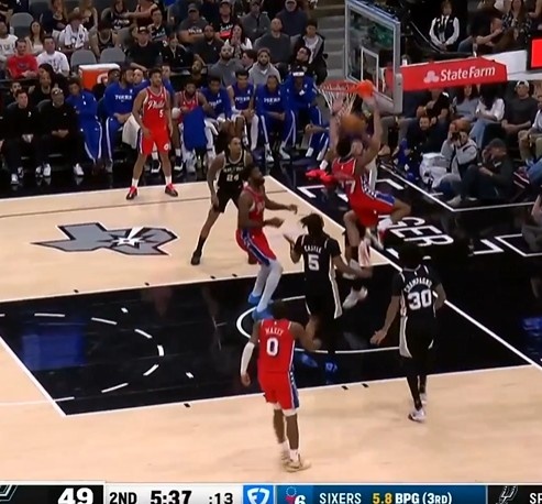 >年轻人好腰啊!埃奇库姆冲筐折叠对抗拉杆上篮得分