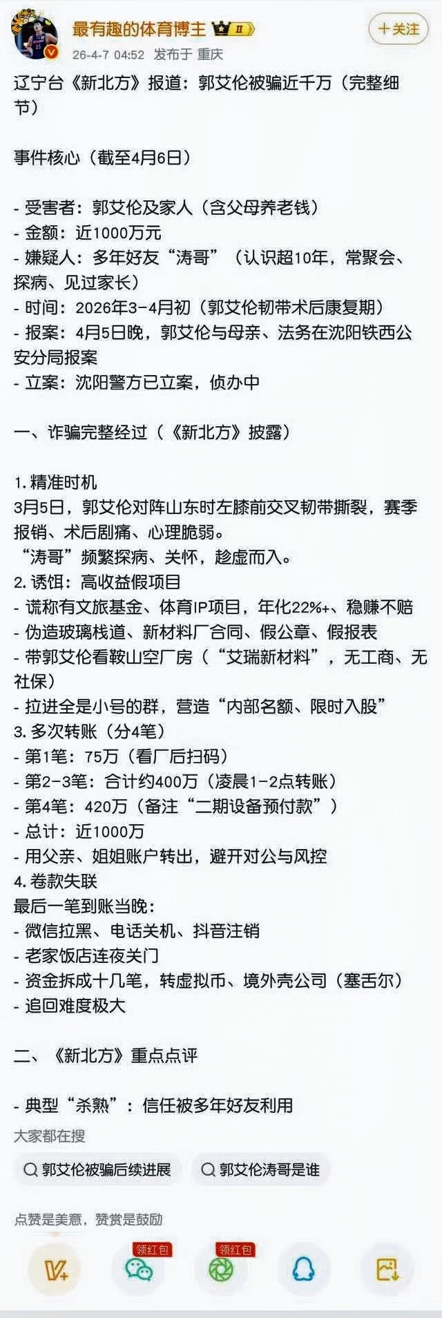 1.郭艾伦首先表示,网上编造的诸如“看厂房”、“凌晨转账”之类的细节显得太过“真实”,让他不得不出来澄清。并表示:“自媒体说啥都行,你(微博)挂蓝V的大媒体咋也跟着闹呢。”