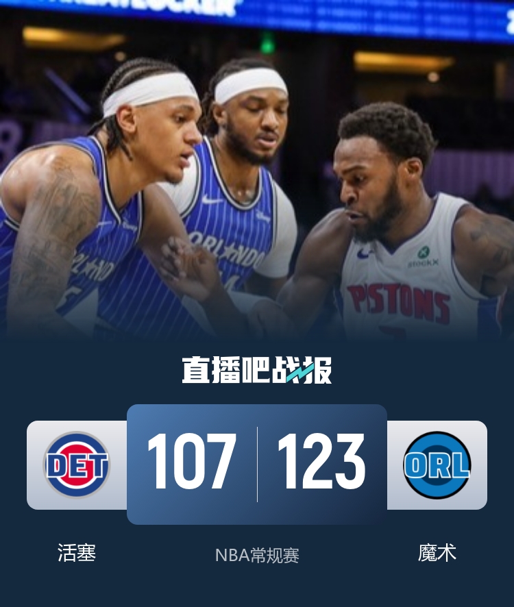 直播吧4月7日讯 NBA常规赛,魔术今日迎战活塞,两队目前状态都不错,前者两连胜,后者则是三连胜,此役坎宁安、哈里斯、勒韦尔、邓罗、斯图尔特和小瓦格纳等人缺战。