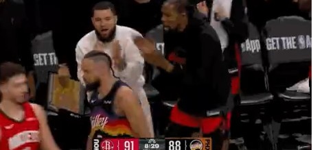 >嘲讽拉满!小史密斯三分造狄龙犯规 杜兰特和范弗里特兴奋鼓掌