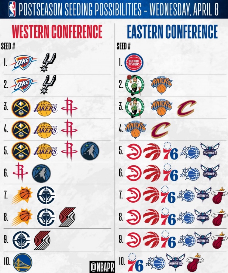 >20支季后赛球队仅活塞/勇士排名确定 其余18支潜在的排名可能一览