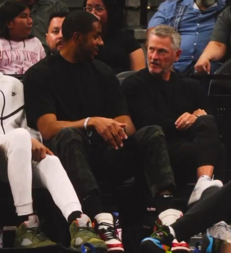 >阿德和开拓者新老板邓顿一起观战与马刺的比赛 两人聊得挺投机