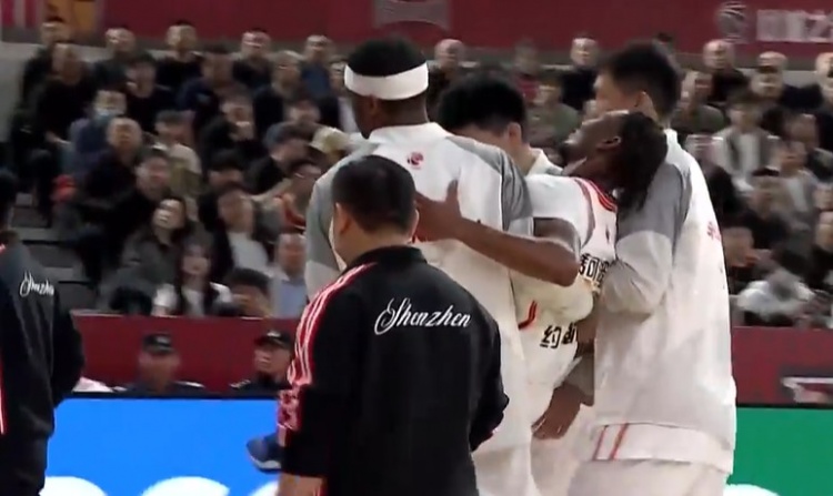 >看着挺严重!马凯尔·约翰逊冲抢球伤到大腿 很痛苦&被队友抬下场