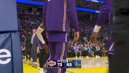比赛开始,湖人7-2开局,勇士连续攻击内线止血,艾顿打得很主动,勇士连续三分继续咬住比分,詹姆斯强投回应,首节湖人领先5分,次节勇士9-0反超,詹姆斯和八村塁相继三分回应,双方继续展开拉锯战,追梦连续送助攻追分,半场湖人还领先4分。下半场,湖人14-5攻击波拉开比分,波杰姆斯基里突外投连续止血,艾顿接连打成半节10分,布朗尼三分命中后勇士连追6分,三节还落后9分,末节詹姆斯攻传带队13-2攻击波一举拉开20分以上领先,克赖尔受伤,随后湖人牢牢保持住20分以上领先,最终湖人119-103轻取勇士。