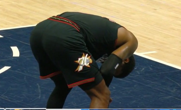 >有点难受!伊桑·汤普森突破被切球 连续扫到乔治脸部两下