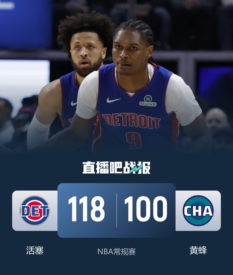 比赛上来,黄蜂先拿4分抢下开局,米勒开场就与邓罗冲突双双吃T,整个第一节双方大打对攻战,火力更加凶猛的活塞在首节末段取得场上领先,次节鲍尔延续了自己的火热外线手感,黄蜂虽然能够抹平分差却未能实现反超,半场结束时活塞还领先3分;下半场回来,两队开始展开拉锯,场上比分交替领先,末节黄蜂直接断电,半节的时间只拿到2分,活塞一波流将分差拉开到两位数,比赛直接失去悬念,最终活塞轻取黄蜂迎来连胜。