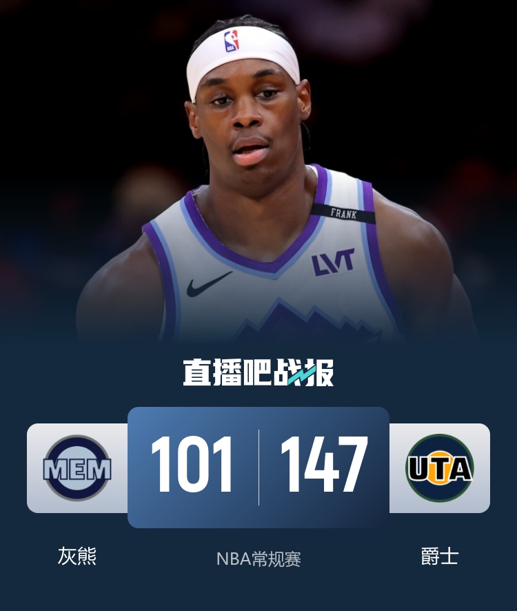 爵士(22-59):辛森30分2板2助2断、姆本27分11板11助3断、钱德勒26分5板10助2断、贝利23分10板2助3断、希布韦16分22板3助、威廉姆斯14分3板4助、康查尔11分11板10助5断2帽。