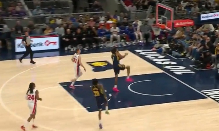 这球是真滴酷!奥比·托平反击胯下单臂暴扣!但先超时了!